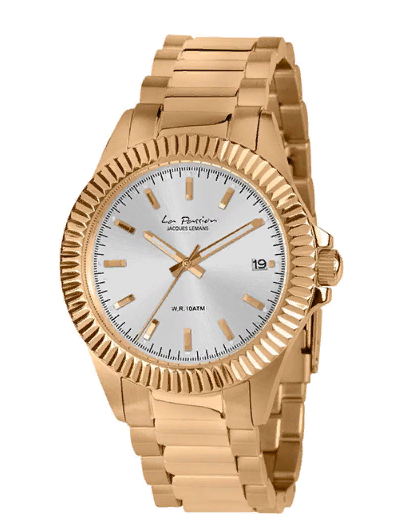 Женские часы из коллекции La Passion выполнены в стиле casual. Корпус из нержавеющей стали имеет диаметр 38 мм. Минималистичный стальной циферблат с полировкой в виде солнечных лучей служит фоном для лаконичных рисок и окошка даты в положении «3 часа». В кварцевых часах установлены ударопрочное минеральное стекло Crystex и завинчивающаяся задняя крышка. Водостойкость составляет 10 атмосфер. Стальной браслет придает образу часов спортивный характер. Раскладывающаяся застежка снабжена дополнительной защитой. Корпус и браслет дополнены надежным PVD-покрытием из желтого золота.