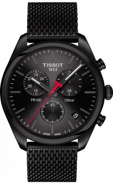 Корпус диаметром 41 мм из нержавеющей стали 316L с черным PVD покрытием устойчивым к истиранию. На черном циферблате хорошо читаются стрелки с белым светонакопительным элементом и красная секундная стрелка с буквой Т на конце. Счетчики хронографа не выделяются на общем черном фоне и позволяют замерять короткие промежутки времени: доли секунд, секунды и минуты. Плоское сапфировое стекло, защищающее циферблат, повредить можно только алмазом.