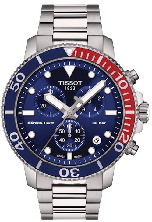 Швейцарские кварцевые наручные мужские часы Tissot Seastar 1000 Quartz Chronograph T120.417.11.041.03 на браслете из нернжавеющей стали выполнены в спортивном и динамичном дизайне, примечательная модель с ярко-синим циферблатом подчеркнёт ваш индивидуальный стиль. T-Sport Seastar 1000 Quartz Chronograph. Дайверские оригинальные наручные часы-хронограф с секундомером.