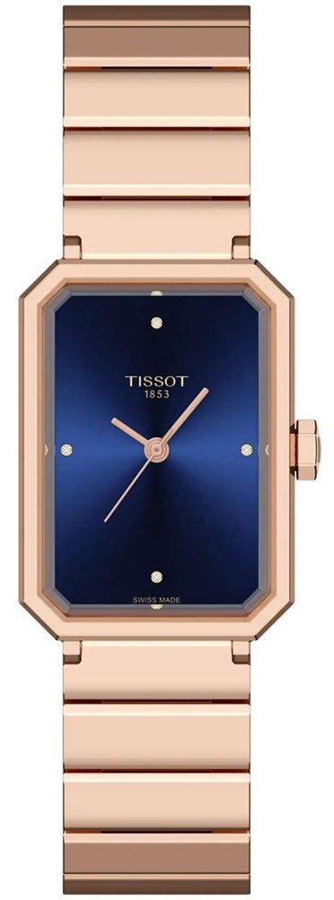 Женские кварцевые часы Tissot из коллекции Classic Contemporary — это элегантный аксессуар, вдохновлённый стилем ар-деко 1920-х годов. Модель SRV сочетает геометрические формы и ретро-эстетику с современной технологией. Корпус прямоугольной формы размером 30×21,8 мм выполнен из нержавеющей стали 316L с PVD-покрытием цвета розового золота. Циферблат тёмно-синего цвета оформлен четырьмя настоящими бриллиантами на позициях 12, 3, 6 и 9 часов. Циферблат защищён сапфировым стеклом с фасетированной огранкой, повторяющей форму корпуса. Часы оснащены стальным браслетом с PVD-покрытием цвета розового золота на застёжке «бабочка» с кнопками со системой быстрой замены ремешка. Водонепроницаемость 50 м позволяет использовать часы в повседневных условиях. Идеальный выбор для тех, кто ценит стиль, наследие и швейцарское качество.