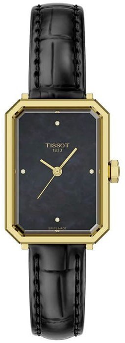 Tissot SRV 30mm — утончённая модель в винтажном стиле с элегантным акцентом. Корпус прямоугольной формы украшен PVD-покрытием в оттенке жёлтого золота, что придаёт часам благородный облик. Чёрный циферблат с лаконичными метками, представляющих из себя 4 инкрустированных в циферблат бриллианта, подчёркивает минималистичный характер модели, а за точность отвечает швейцарский кварцевый механизм. Циферблат защищён сапфировым стеклом, стойким к царапинам. Часы дополнены кожаным ремешком с классической пряжкой, что обеспечивает комфортную посадку на запястье и гармонично завершает дизайн.